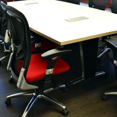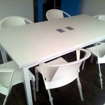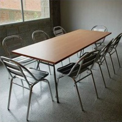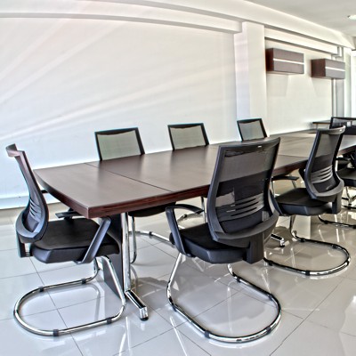 Mesas de junta elaboradas en madera maciza o en aglomerado enchapado con canto termofundido. Estructuras de soporte cromadas o Cold Rolled con acabado en pintura electostática. Pasa cables con direccionamiento de cableado. Tamaños según diseño y necesidades del cliente.